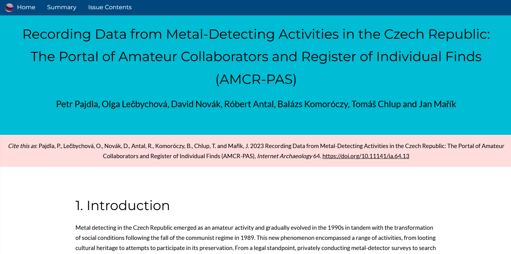 Portál amatérských spolupracovníků a evidence samostatných nálezů