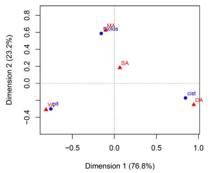 - keep in mind that this database is artificial and for teaching purposes only. Although it might, to some extent, resemble real archaeological data, some aspect were purposely modified to better illustrate the logic of the correspondence analysis