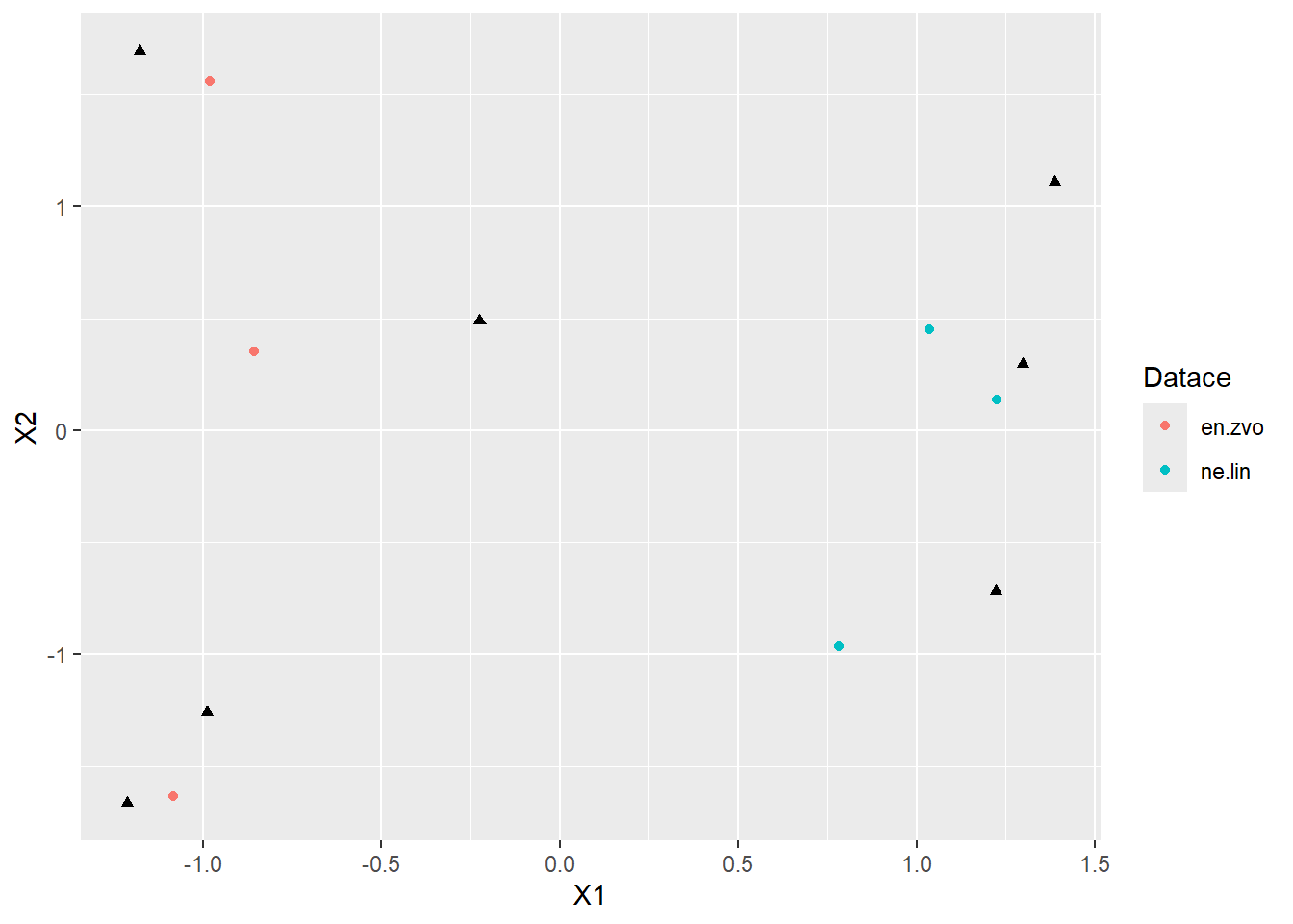 geom_point(data = coord_artefakty, aes(Y1, Y2), shape = 17, size = 2)+